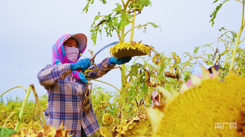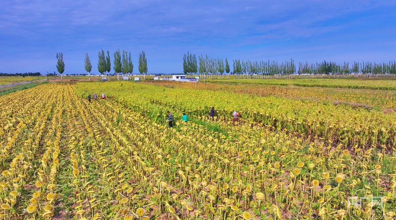 金秋时节,在内蒙古鄂尔多斯市杭锦旗好日子嘎朗图镇,14万亩葵花田慎重进入收割期。